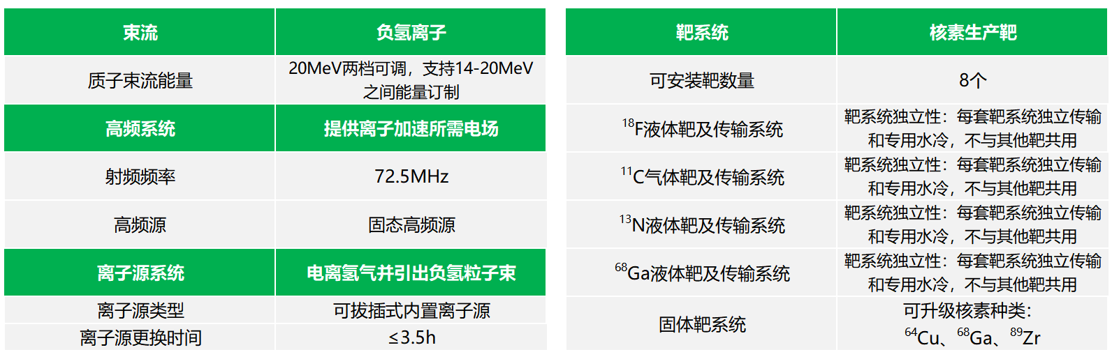 可生產(chǎn)核素:18F , 11C , 13N , 68Ga , 89Zr , 64Cu , 99mTc , 124I , 44Sc